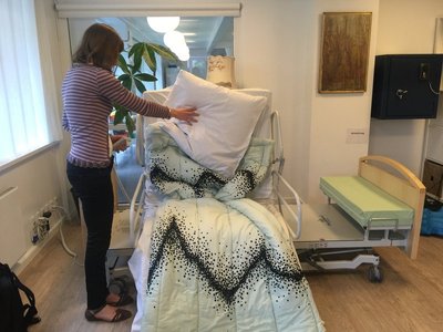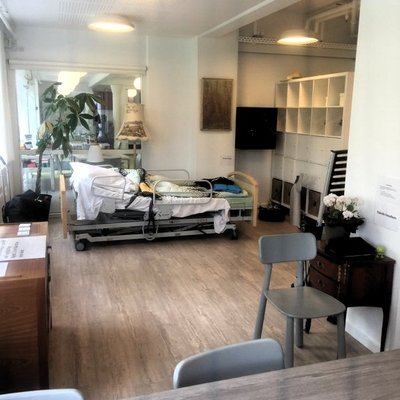 Este é um laboratório muito especial. Mantido pela municipalidade de Copenhagen, tem o objetivo de testar equipamentos e produtos a serem usados por idosos ou pelos empregados, em suas casas ou nos plejehjem. São itens que facilitarão não apenas a vida do idoso mas também a dos empregados, uma preocupação muito pertinente dado que a mão de obra nesta área é escassa e precisa ser o máximo possível cercada de possibilidades que facilitem seu trabalho. Os dinamarqueses não costumam chamar de cuidador às pessoas contratadas para prestar os serviços necessários aos idosos com algum tipo de limitação, eles parecem recusar o termo que pode soar como um eufemismo que mascara a dificuldade da tarefa.